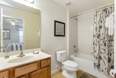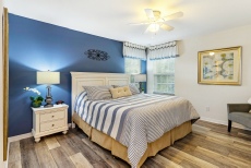 The tranquil blue décor also make it a lovely relaxing room after a hard day at the theme parks! There is a king bed and a 32” TV.