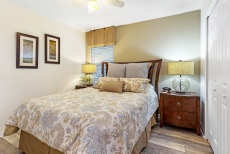 Decorated in neutral beiges and blues this room has a queen sized bed, 32” wall mounted TV and wardrobe.