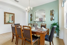 The dining room is on open plan with the living room and provides a large dining table with seating for eight people.